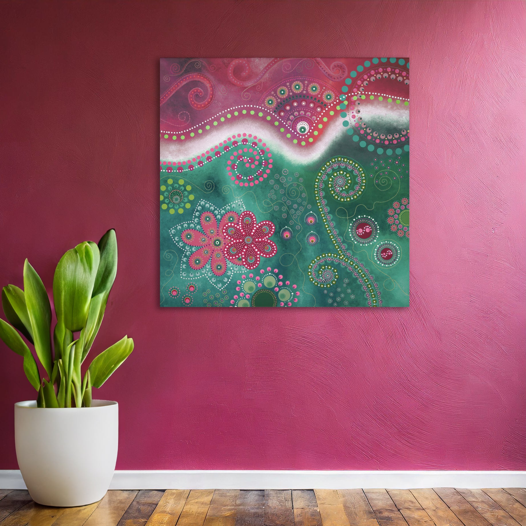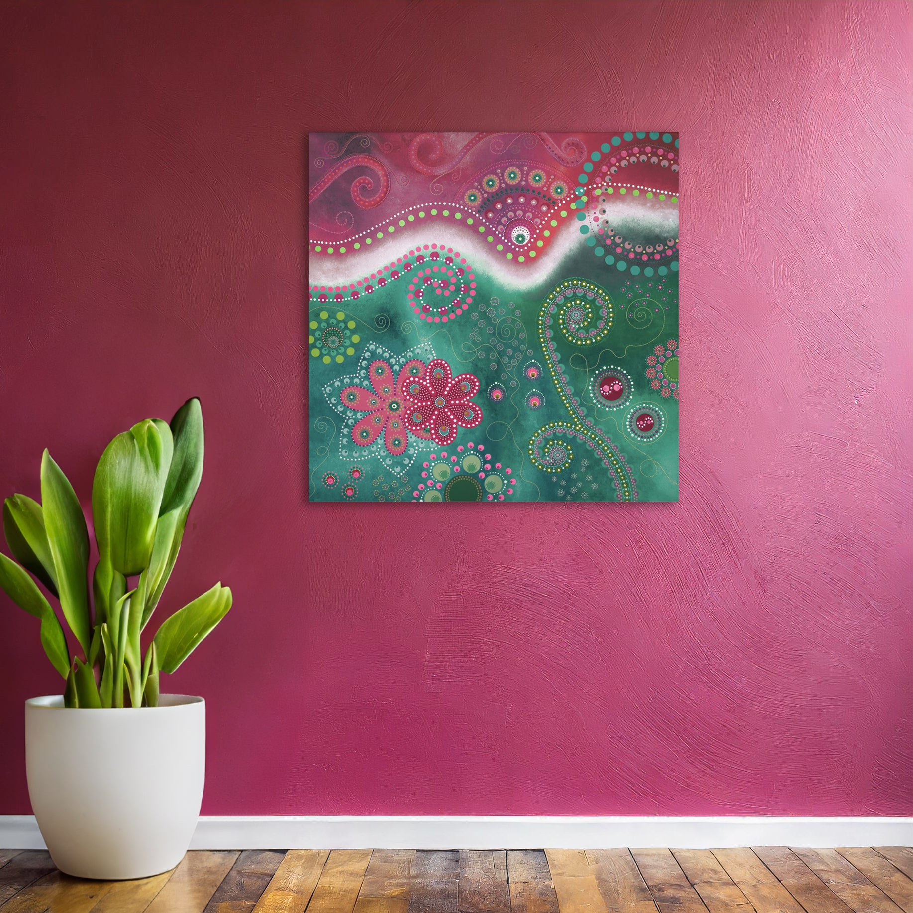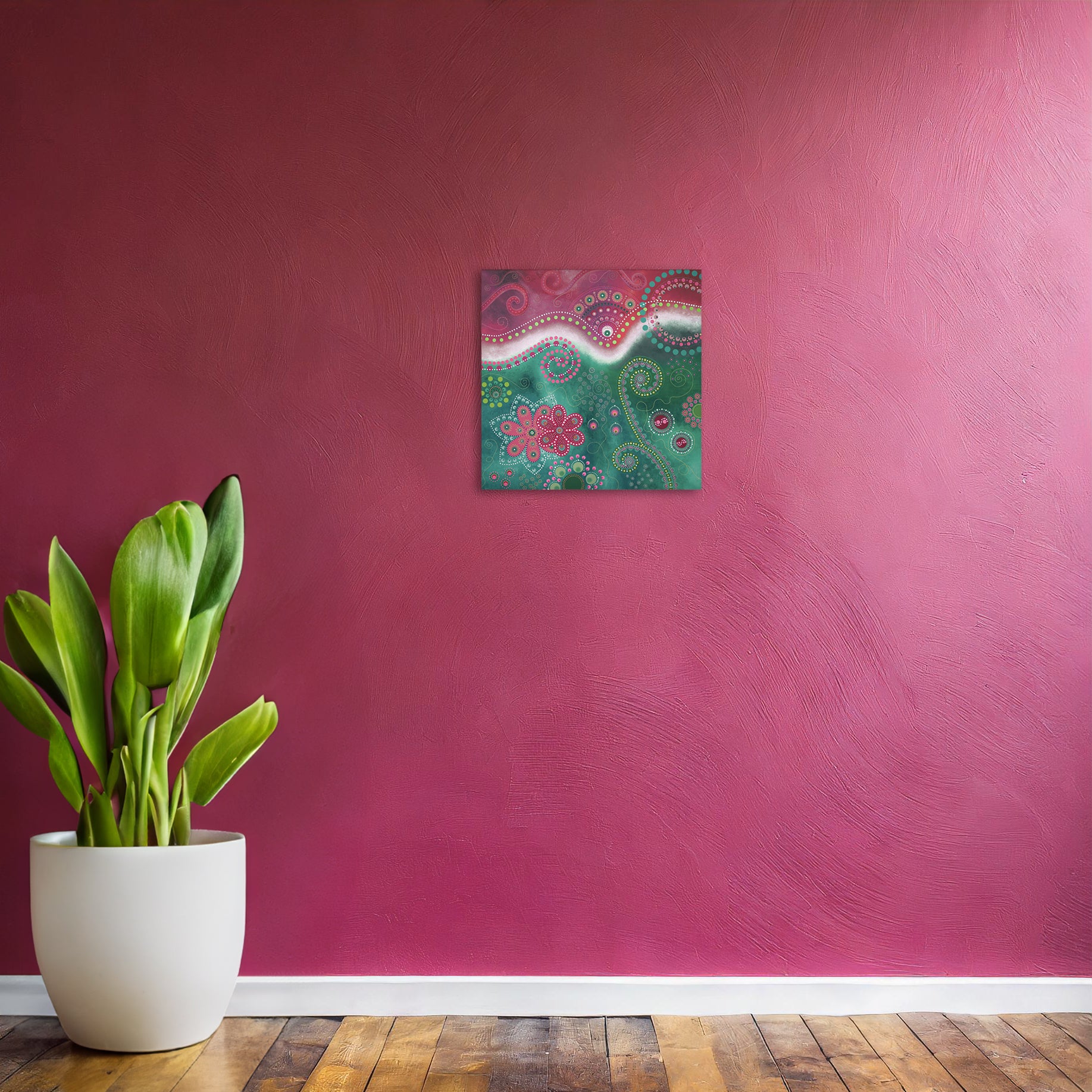 This painting wants to spread its happiness far and wide and makes for a perfect addition to an already colourful home or maybe as that splash of colour in a more minimalist home. Perfect as a gift for someone you love.