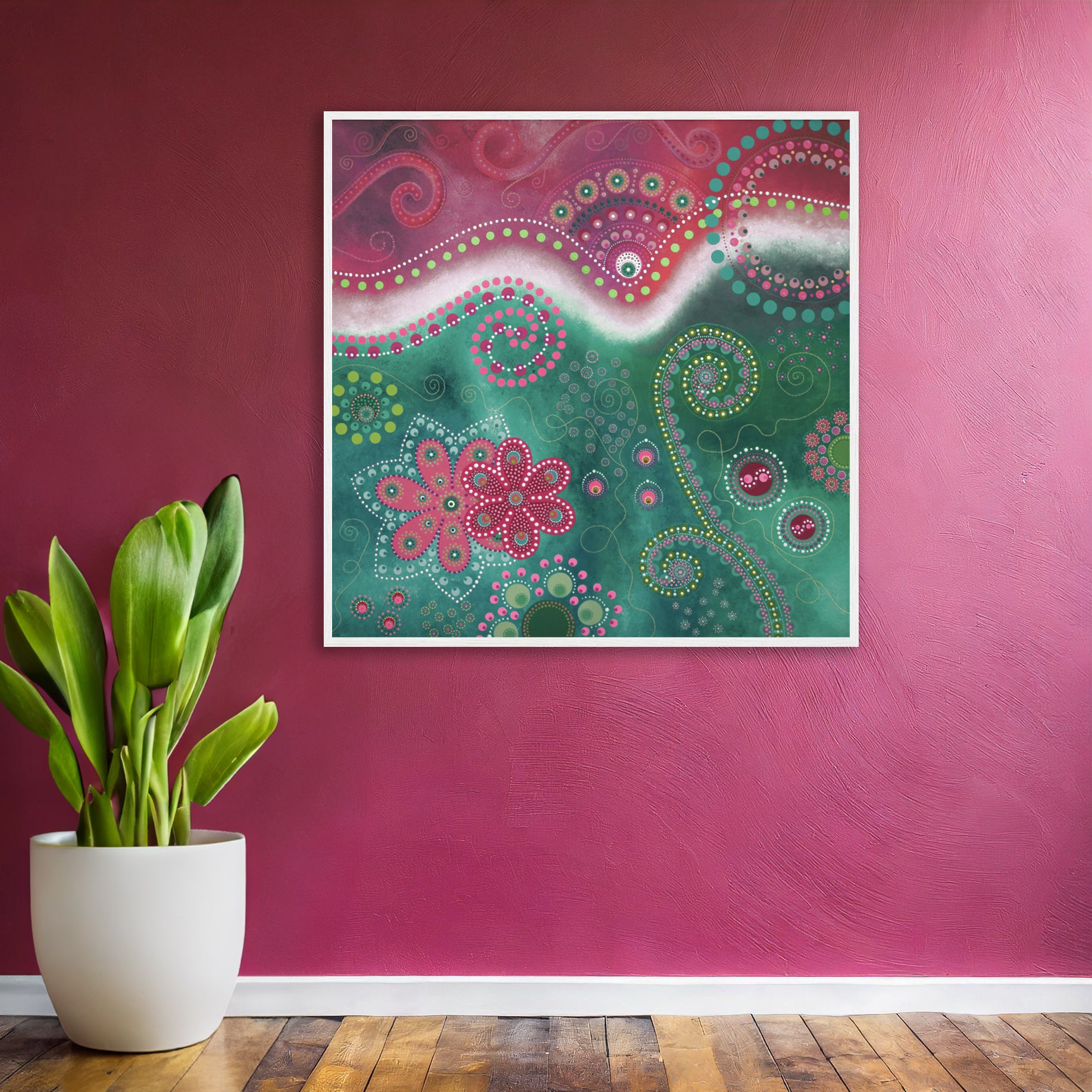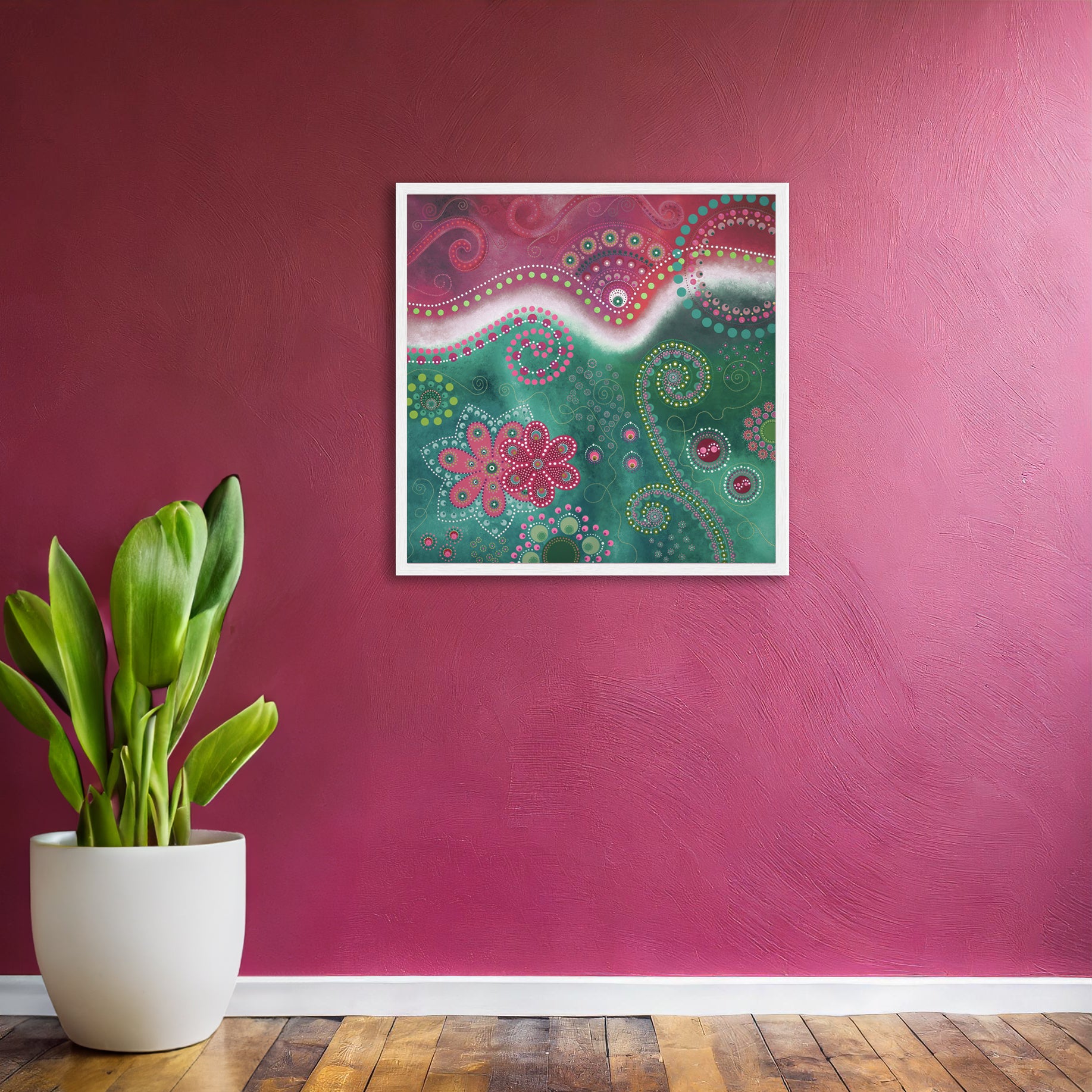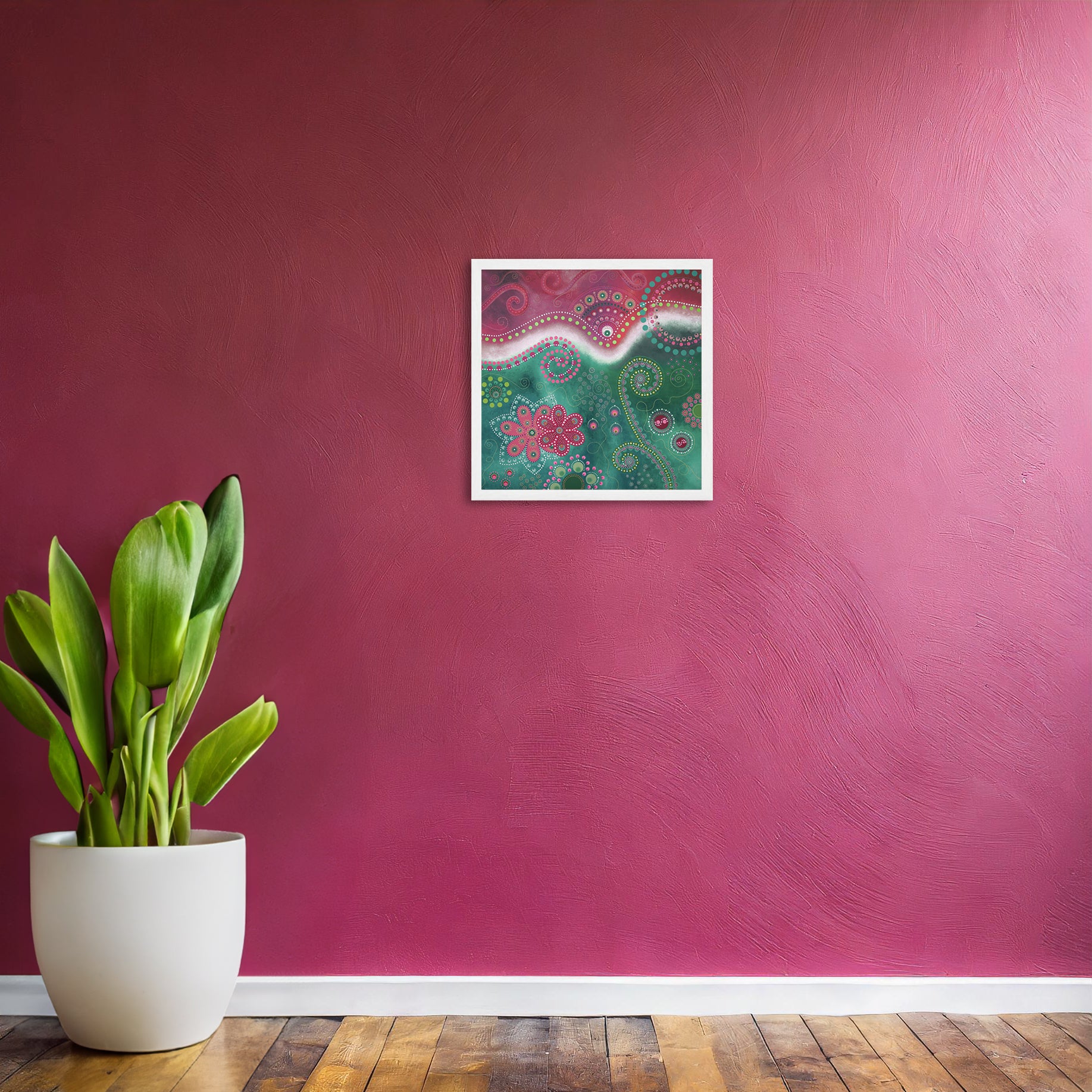 This painting wants to spread its happiness far and wide and makes for a perfect addition to an already colourful home or maybe as that splash of colour in a more minimalist home. Perfect as a gift for someone you love.