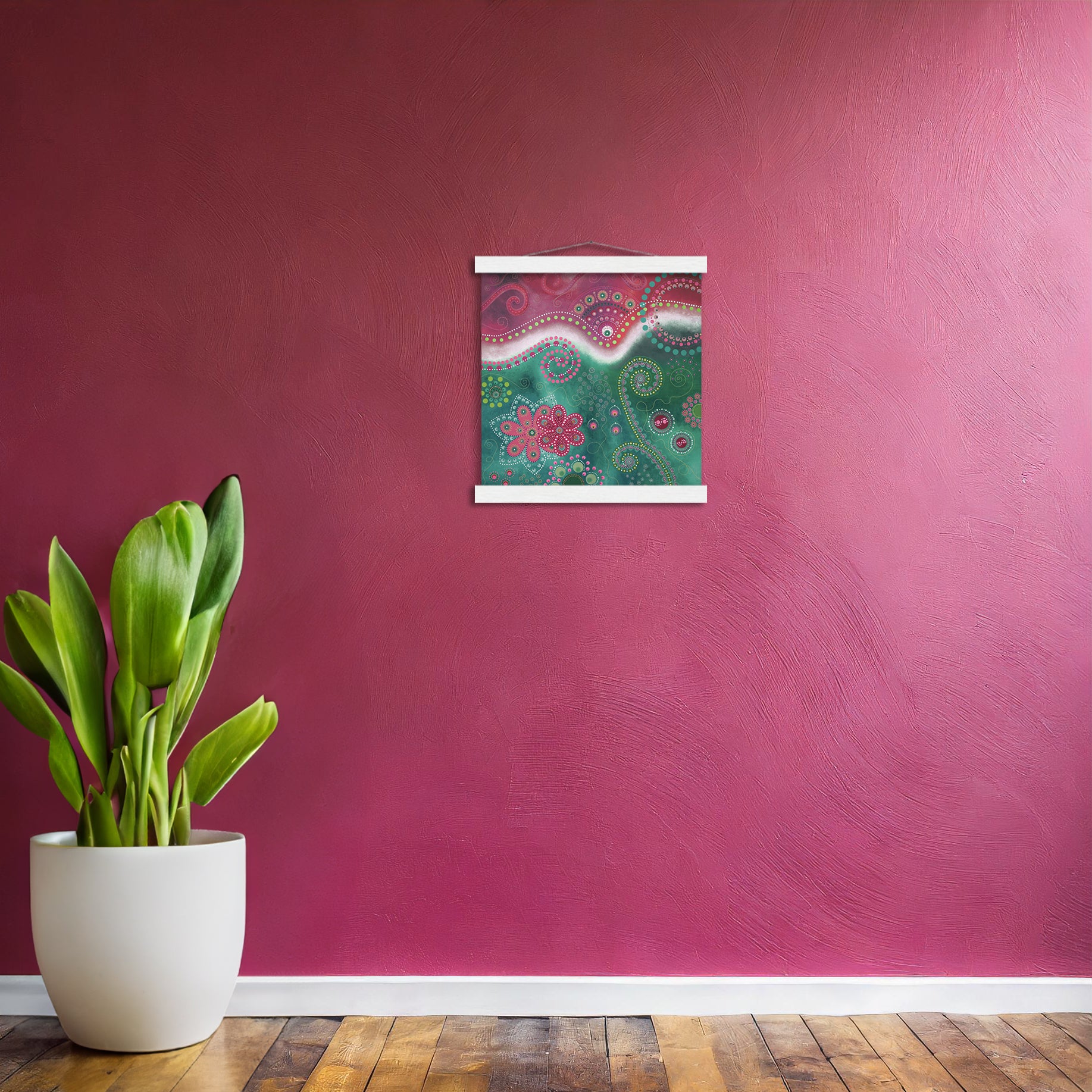 Art print with white wooden hanger